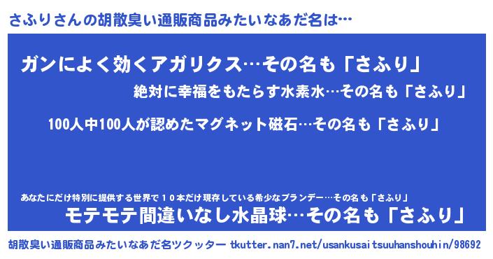 | ヘコむあだ名 | 『さふふぇ~』『さふり(笑)』『牛乳』 |