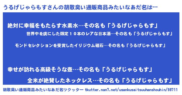 | 意味不明あだ名 | 『ヨモギ科うるげじゃらもす属』 |