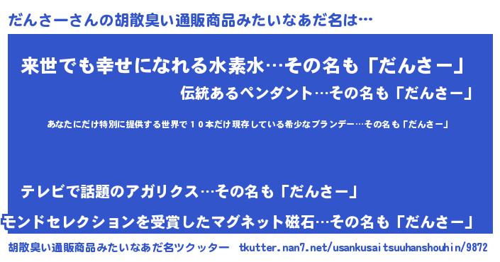 | 意味不明あだ名 | 『住所不定無職だんさー(86歳)』 |
