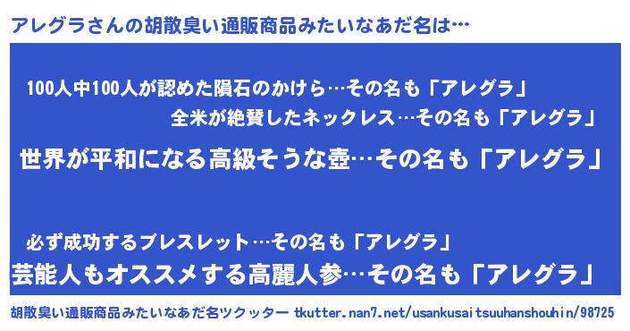 | 意味不明あだ名 | 『アレグラフォーエバー』『自称アレグラ』 |