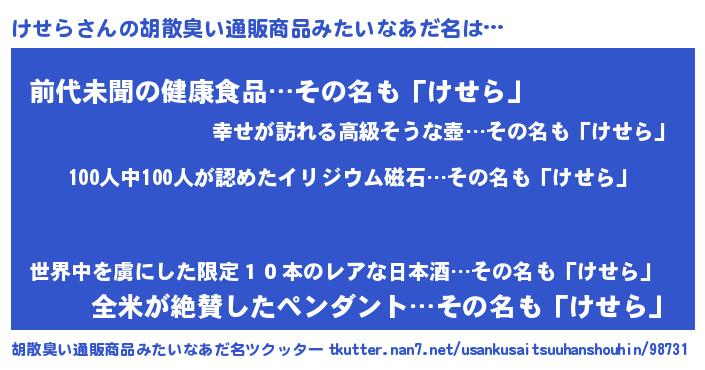 | ヘコむあだ名 | 『けせら(笑)』『けせ太郎』 |