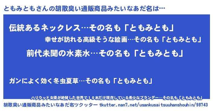 | ヘコむあだ名 | 『ともみとも(震え声)』『ともお』 |