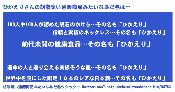 | 意味不明あだ名 | 『永久保存ひかえり』 |