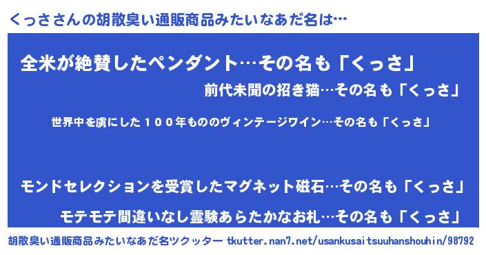 | 意味不明あだ名 | 『住所不定無職くっさ(3歳)』 |
