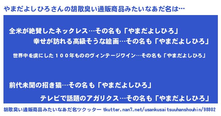 | 意味不明あだ名 | 『住所不定無職やまだよしひろ(8歳)』 |