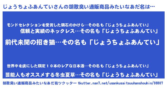| 意味不明あだ名 | 『永久保存じょうちょふあんてい』 |