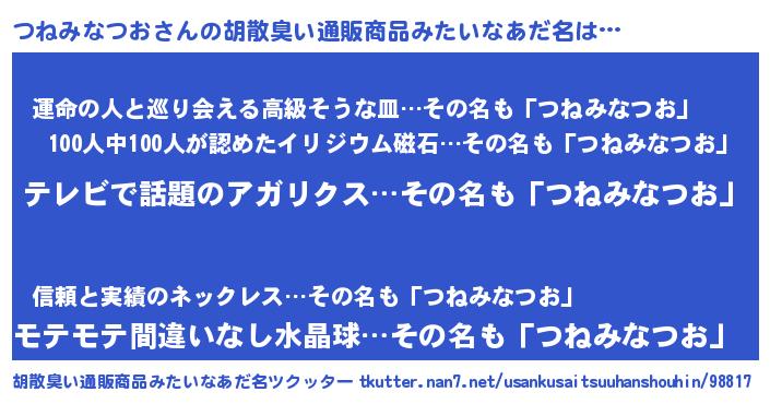 | 意味不明あだ名 | 『自称つねみなつお』 |