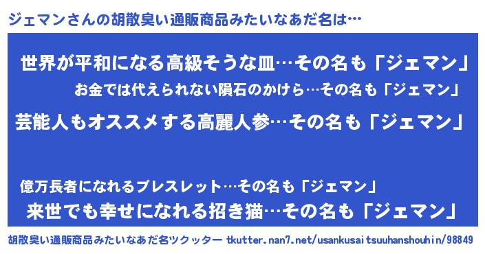 | 意味不明あだ名 | 『自称ジェマン』『ジェマンフォーエバー』 |