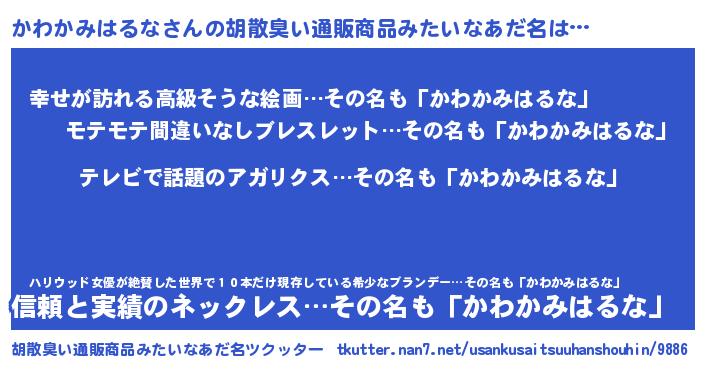 | 肩書あだ名 | 『かわかみはるな少将』 |