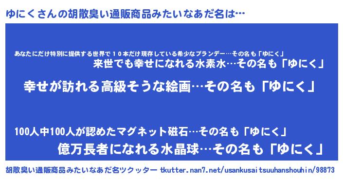 ゆにくさんの胡散臭い通販商品みたいなあだ名をツクッター!