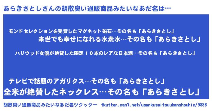 | 意味不明あだ名 | 『住所不定無職あらきさとし(47歳)』 |