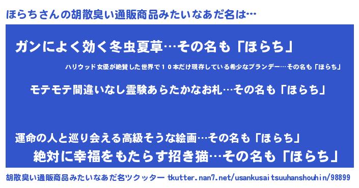 | 男性向けラノベタイトル風あだ名 | 『ほらちの憂鬱』『ホラチスレイヤー』 |