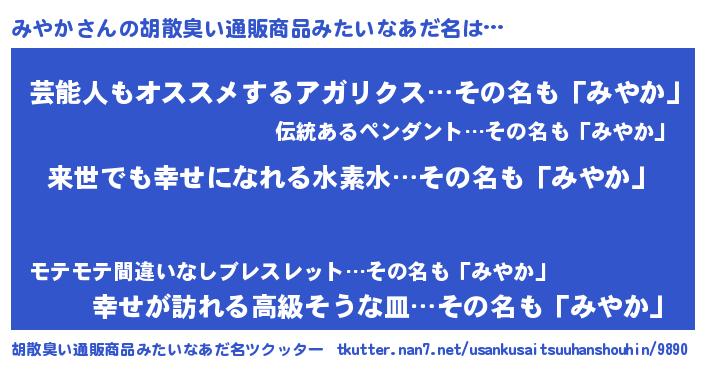 | ヒーロー風カッコイイあだ名 | 『ネオミヤカ』『究極戦士ミヤカ』 |