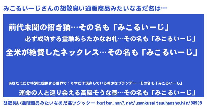 | 意味不明あだ名 | 『とにかく怪しいみこるいーじ』 |