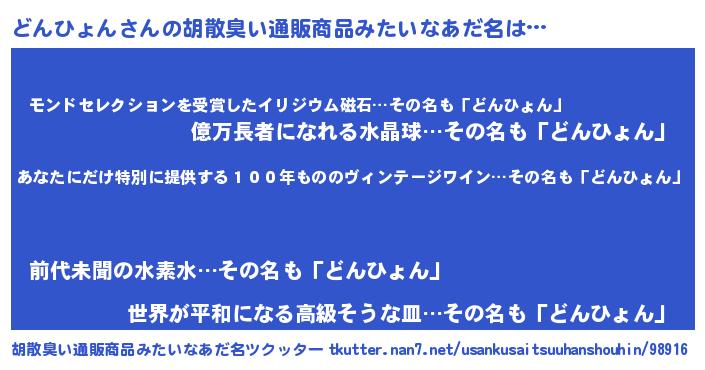 | 意味不明あだ名 | 『住所不定無職どんひょん(11歳)』 |