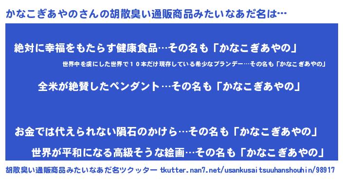 | ヘコむあだ名 | 『かなっぺ』『かなこぎあやの(笑)』 |