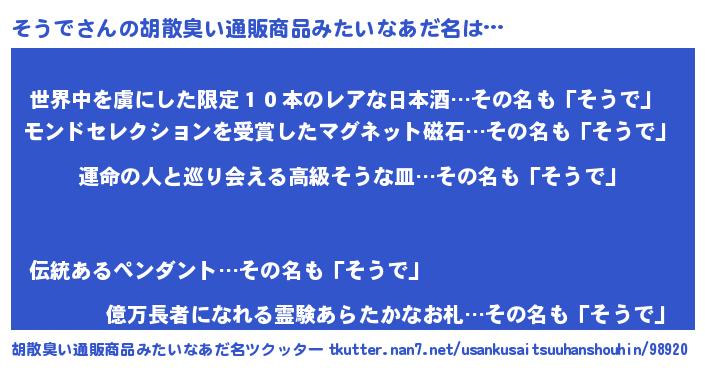 | ヒーロー風カッコイイあだ名 | 『ウルトラそうでマン』『仮面ソウダー』 |