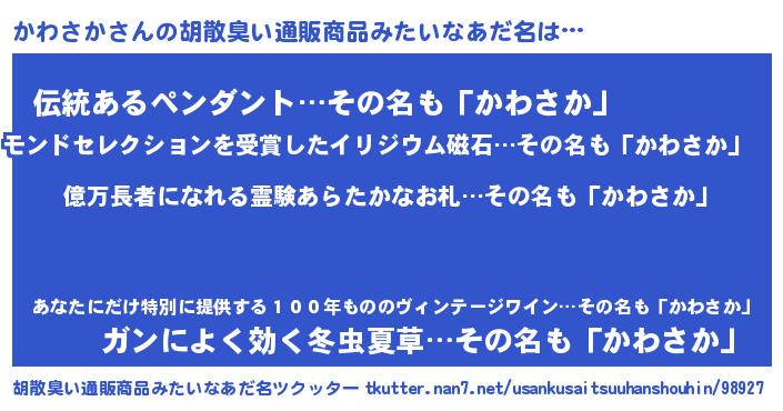 | 意味不明あだ名 | 『ペロリンかわさか』『自称かわさか』 |