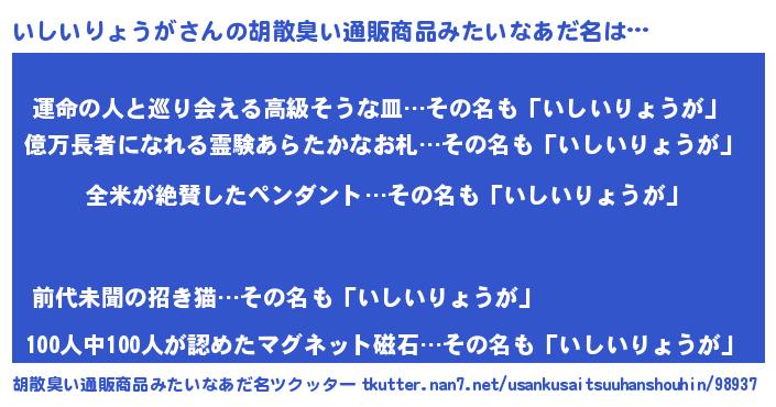 | 意味不明あだ名 | 『とにかく怪しいいしいりょうが』 |