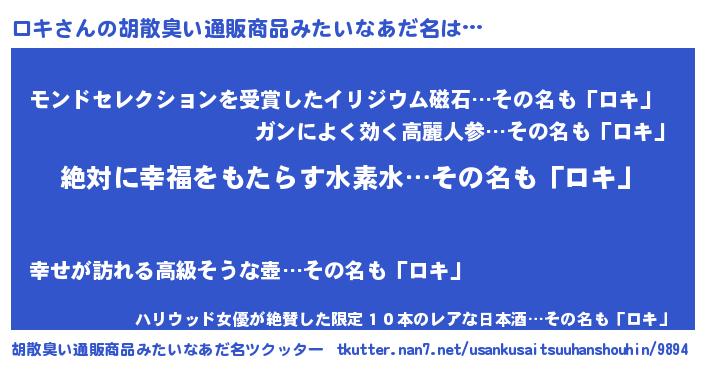 | ヘコむあだ名 | 『ロキ(遠い目)』『酢こんぶ』 |