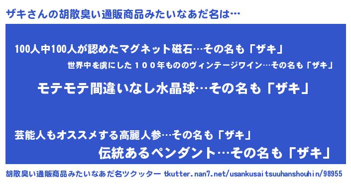 | ヒーロー風カッコイイあだ名 | 『スーパーザキ』『慈愛の使者ザキ』 |