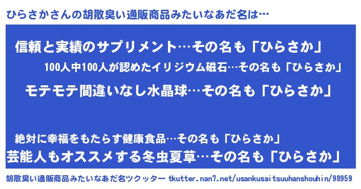 | 意味不明あだ名 | 『ペロリンひらさか』『自称ひらさか』 |