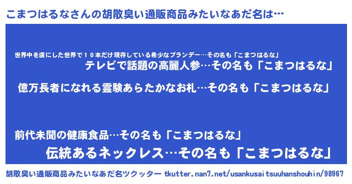 | ヒーロー風カッコイイあだ名 | 『スーパーコマツハルナ』『仮面コマダー』 |