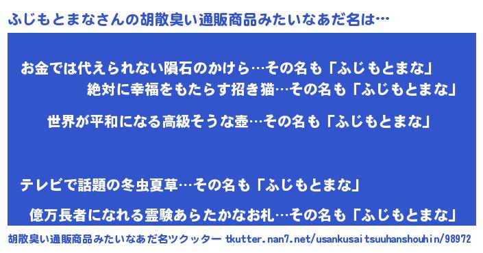 | ヘコむあだ名 | 『なまこ酢』『ふじっふぃ~』 |