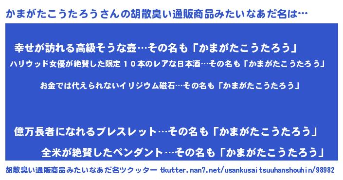 | 意味不明あだ名 | 『眠気覚ましガムかまがたこうたろう味』 |