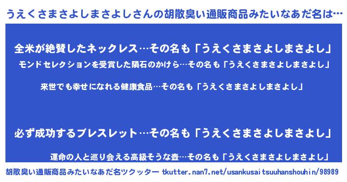 | 意味不明あだ名 | 『永久保存うえくさまさよしまさよし』 |