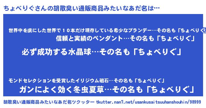 | 欧米人風あだ名 | 『トリンドルちょべりぐ』 |