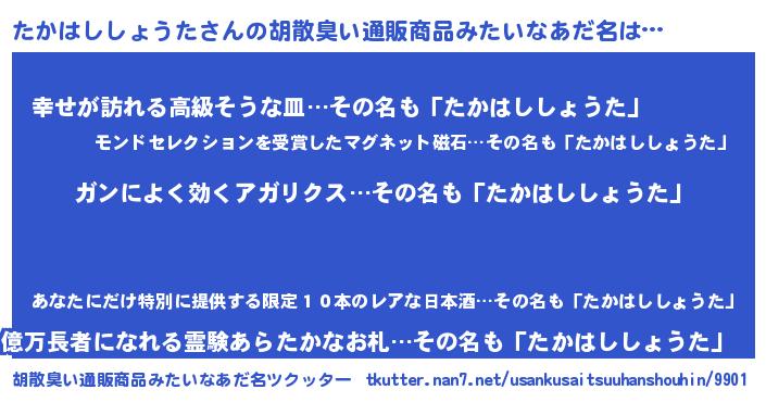 | 伝説のあだ名 | 『秘められし忍者たかはししょうた』 |