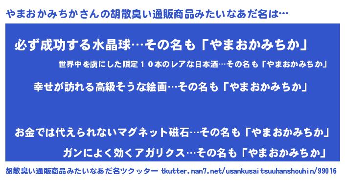 | 男性向けラノベタイトル風あだ名 | 『ヤマオカミチカスレイヤー』 |