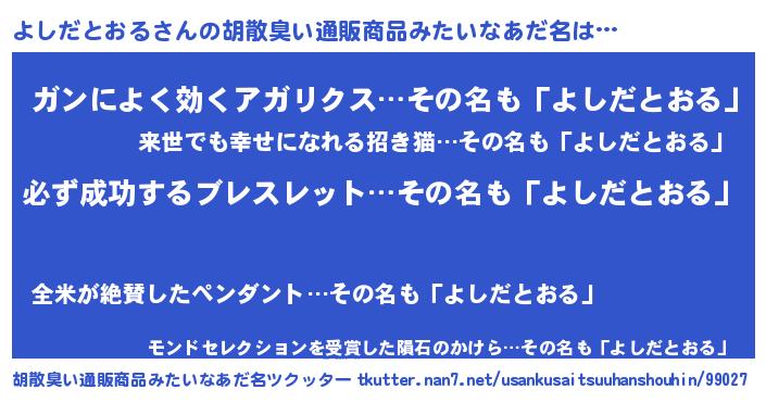 | 伝説のあだ名 | 『伝説の竜騎士よしだとおる』 |