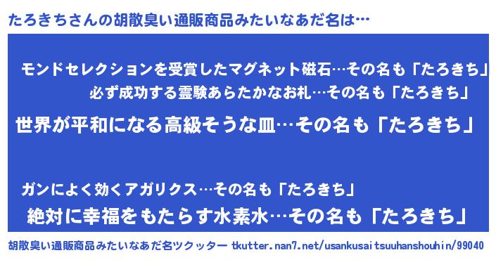 | 肩書あだ名 | 『たろきち上級大将』『たろきち大統領』 |