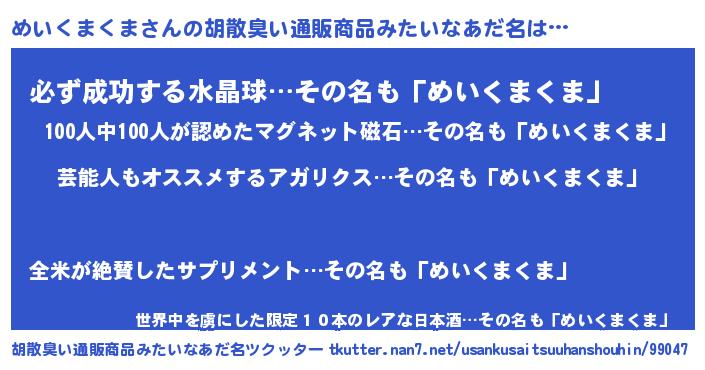 | 意味不明あだ名 | 『自称めいくまくま』 |