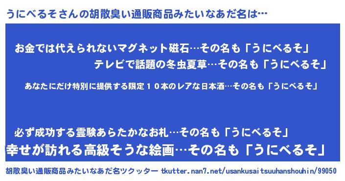 | 伝説のあだ名 | 『救世主となる占い師うにべるそ』 |