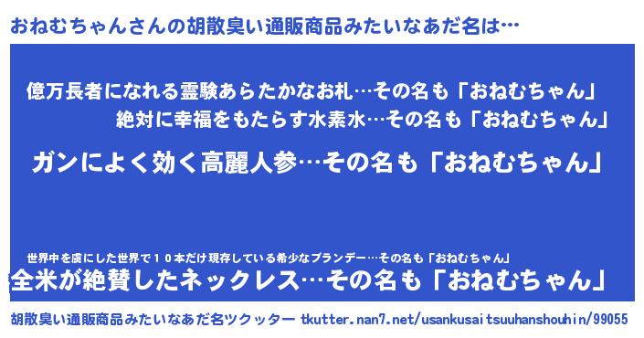 | 意味不明あだ名 | 『自称おねむちゃん』 |