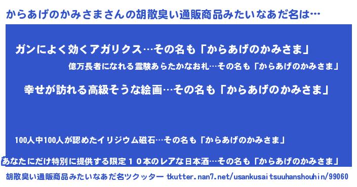 | 意味不明あだ名 | 『からあげのかみさまフォーエバー』 |