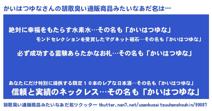 | ヘコむあだ名 | 『かいっふぃ~』『かいはつゆな(遠い目)』 |