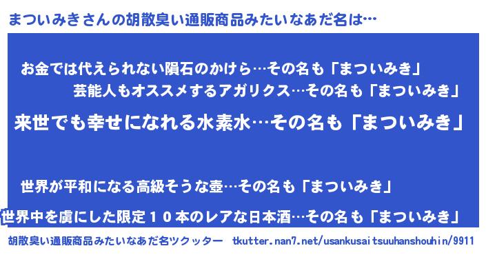 | 意味不明あだ名 | 『永久保存まついみき』『自称まついみき』 |