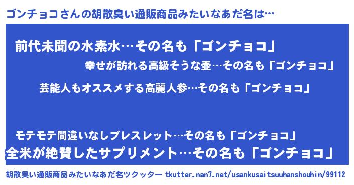 | 意味不明あだ名 | 『自称ゴンチョコ』『永久保存ゴンチョコ』 |