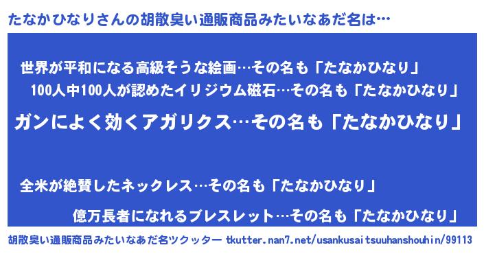 | 意味不明あだ名 | 『自称たなかひなり』 |