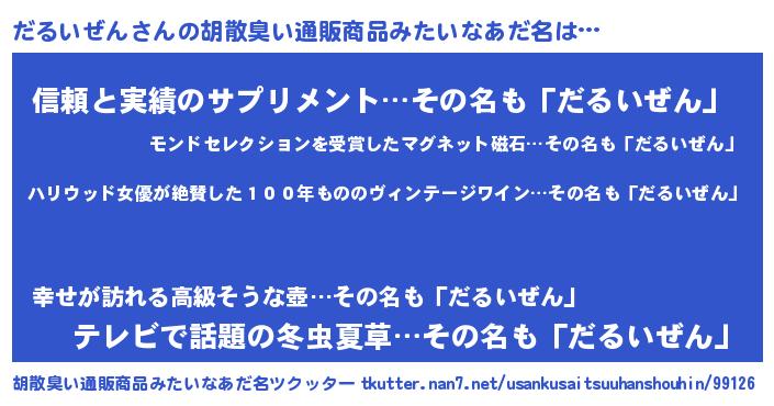 | 欧米人風あだ名 | 『ダレノガレだるいぜん』 |