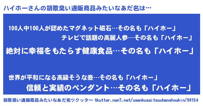 | ヒーロー風カッコイイあだ名 | 『ネオハイホー』『正義の使者ハイホー』 |