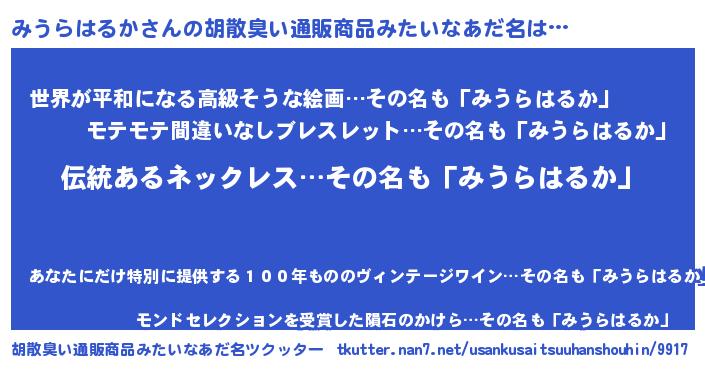 | 意味不明あだ名 | 『とにかく怪しいみうらはるか』 |