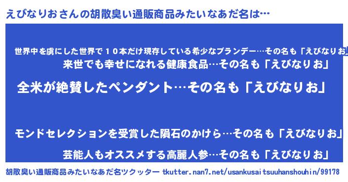 | 意味不明あだ名 | 『とにかく怪しいえびなりお』 |