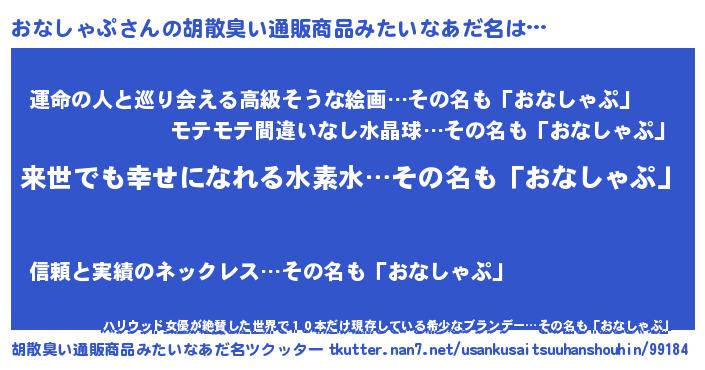 | 意味不明あだ名 | 『永久保存おなしゃぷ』 |
