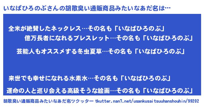 いなばひろのぶさんの胡散臭い通販商品みたいなあだ名をツクッター!