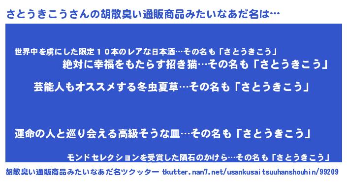 | 恥ずかしいあだ名 | 『サトウキコウデラックス』『さとちん』 |